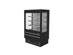Vertical Air Curtain Open Display Merchandiser, 28.6 cu. ft. capacity, 60"W x 29-1/2"D x 80-1/2"H, self-contained refrigeration with self-cleaning condenser, LED interior lighting, (4) solid shelves, night curtain, front air intake & rear air discharge, black interior, black exterior, R290 Hydrocarbon refrigerant, (2) 3/4 HP, 115v/60/1-ph, 15.5 amps, cord with NEMA 5-20P, cETLus, ETL-Sanitation