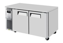 J Series Side Mount Undercounter Refrigerator, two-section, 59"W x 27-1/2"D x 28-3/4"H, 13.58 cu. ft., front air intake, side mount self-contained compressor, (2) stainless steel doors with recessed handles, (2) PE coated wire shelves, LED interior lighting, hot gas condensate system, stainless steel exterior (galvanized steel back & bottom), aluminum interior & door liners with stainless steel floor, R600a Hydrocarbon refrigerant, 1/5 HP, 115v/60/1-ph, 1.9 amps, NEMA 5-15P, cETLus, ETL-Sanitation