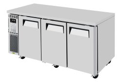 J Series Side Mount Undercounter Dual Temp Refrigerator/Freezer, three-section, 70-7/8"W x 27-1/2"D x 28-3/4"H, 12.18 cu. ft (refrigerator) & 5.58 cu. ft (freezer), front air intake, side mount self-contained compressor, (3) solid doors, (3) PE coated wire shelves, LED interior lighting, hot gas condensate system, stainless steel exterior (galvanized steel back & bottom), aluminum interior & door liners with stainless steel floor, R290 Hydrocarbon refrigerant, 2/5 HP, 115v/60/1-ph, 3.5 amps, NEMA 5-15P, cETLus, ETL-Sanitation