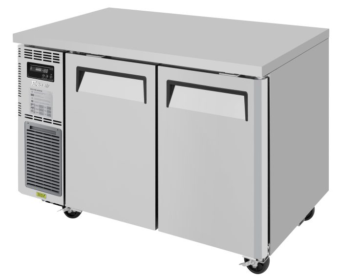J Series Side Mount Undercounter Freezer, two-section, 47-1/4″W x 27-1/2″D x 28-3/4″H, 9.93 cu. ft., front air intake, side mount self-contained compressor, (2) stainless steel doors with recessed handles, (2) PE coated wire shelves, LED interior lighting, stainless steel exterior (galvanized steel back & bottom), aluminum interior & door liners with stainless steel floor, R290 Hydrocarbon refrigerant, 1/3 HP, 115v/60/1-ph, 2.6 amps, NEMA 5-15P, cETLus, ETL-Sanitation