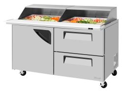 Super Deluxe Sandwich/Salad Mega Top Unit with Slide-Back Lid, two-section, 60-1/4"W x 37"D x 44-1/4"H, 19.0 cu. ft., (1) solid door,(2) drawers (1) stainless steel wire shelves, self-cleaning condenser equipped, insulated slide-back lid, 9-1/2"deep cutting board, LED interior lighting & fan control, cold bunker system, R290 Hydrocarbon refrigerant, stainless steel interior & exterior (galvanized steel bottom), 1/3 HP, 115v/60/1-ph, 4.3 amps, NEMA 5-15P, ETL-Sanitation, cETLus, Made in USA (contact sales for lead time)
