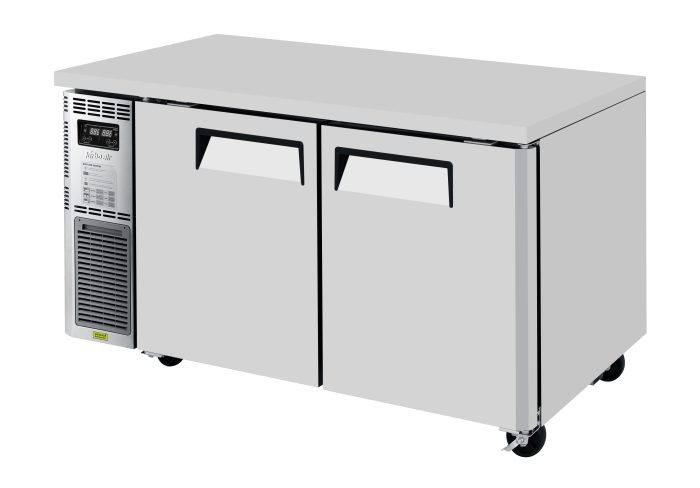 J Series Side Mount Undercounter Dual Temp Refrigerator/Freezer, two-section, 59″W x 27-1/2″D x 28-3/4″H, 6.28 cu. ft. refrigerator & 6.89 cu. ft. freezer, front air intake, side mount self-contained compressor, (2) solid doors, (2) PE coated wire shelves, LED interior lighting, hot gas condensate system, stainless steel exterior (galvanized steel back & bottom), aluminum interior & door liners with stainless steel floor, R290 Hydrocarbon refrigerant, 1/3 HP, 115v/60/1-ph, 2.6 amps, NEMA 5-15P, ETL-Sanitation, cETLus