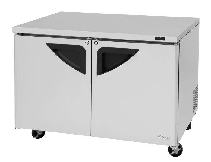 Super Deluxe Series Undercounter Refrigerator, two-section, 48-1/4″W x 30″D x 30-1/2″H, 12.2 cu. ft., self-contained rear mount refrigeration system, self-cleaning condenser, (2) solid doors with locks, (2) stainless steel wire shelves, stainless steel top, front & sides (galvanized steel back & bottom), stainless steel interior with ABS door liner, LED interior lighting & fan control, R290 Hydrocarbon refrigerant, 1/5 HP, 115v/60/1-ph, 2.5 amps, cord with NEMA 5-15P, ETL-Sanitation, cETLus