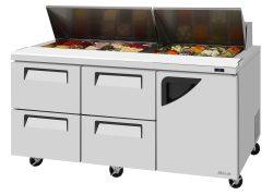 Super Deluxe Food Prep Tables- Drawers, Self-Cleaning condenser, Digital temperature control & monitor system, Front Breathing airflow, 17.6 cu. ft., 72-5/8"W x 37"D x 44-3/8"H, Cold bunker system, stainless steel interior & exterior (galvanized steel back & bottom), High-density polyurethane insulation, Insulated pan cover, 9-1/2"deep cutting board, R290 Hydrocarbon refrigerant, 3/8 HP, 115v/60/1-ph, 9.9 amps, NEMA 5-15P, cETLus, ETL-Sanitation (contact sales for lead time)